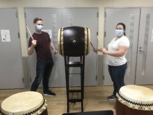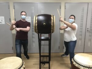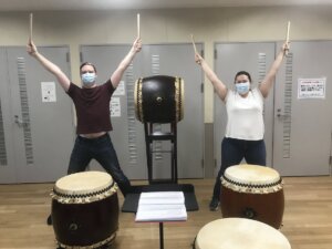 体験前日にアメリカニューヨークから飛び込みで男女ペアで和太鼓体験。