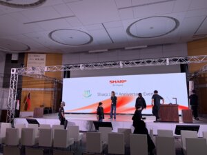 商品が展示され 世界のSHARPの商品でゲストをおもてなし。