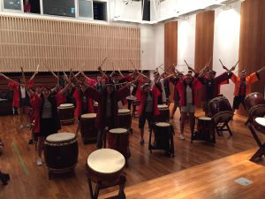 この日は午前から午後日本語の勉強されてから和太鼓体験。