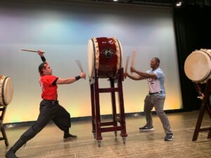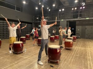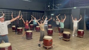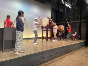 にゅーとんと学生の大太鼓セッションが始まりました。