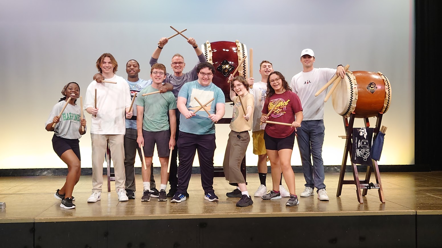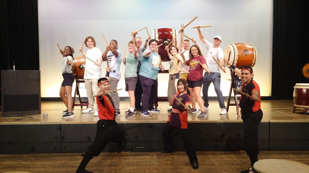 アメリカフロリダ州Lynn University大学14名学で和太鼓体験