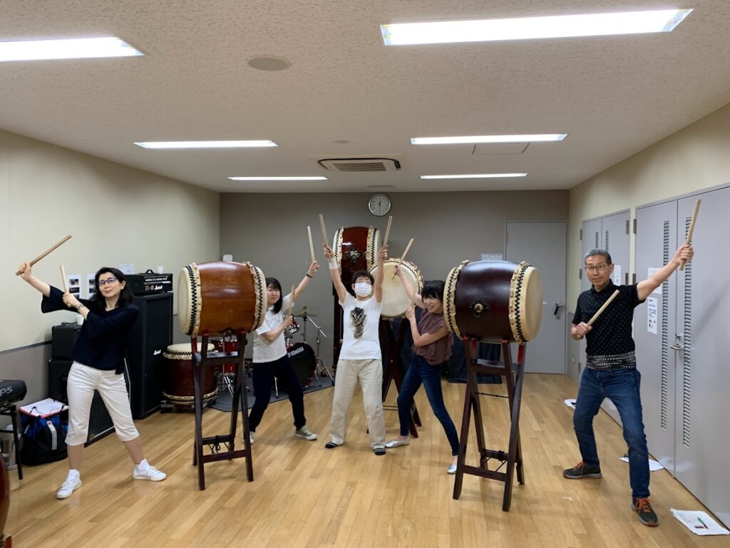 ガイド研修5名様で和太鼓体験