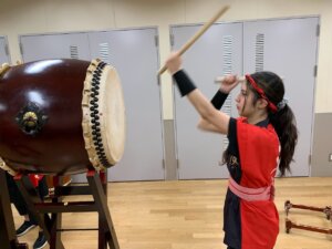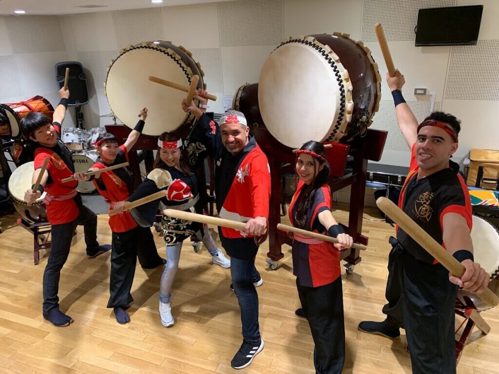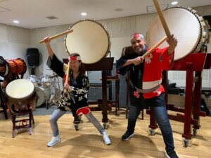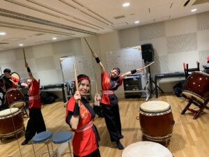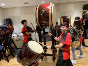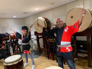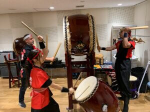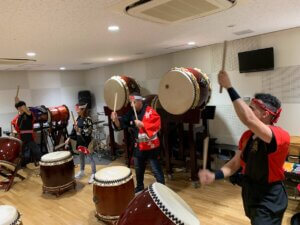 と言って5年前の名刺を頼りに和太鼓体験を予約して