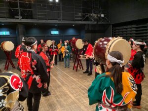 最後に縁起物の和太鼓で邪を祓って商売繫盛 ご多幸を願って