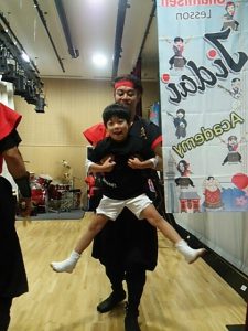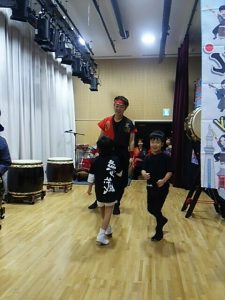 ジュニアクラスの宏太郎君は嵩丸、松風両講師を従えて横打ち2台の難易度の高い曲に挑戦
