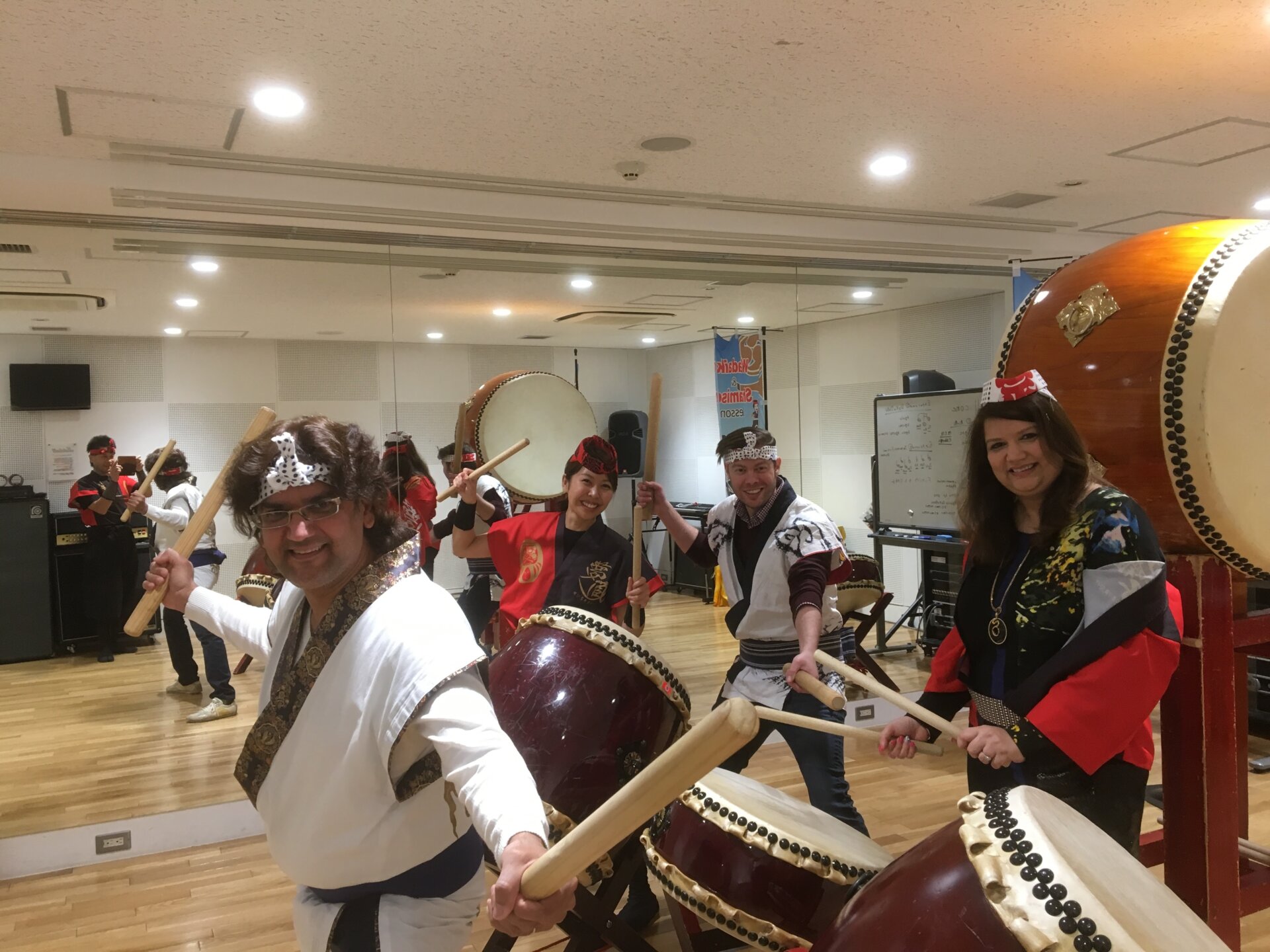 仕事も片付いて、どうせ日本にまで来ているのだから遊びもしよう!ということで急遽和太鼓体験をすることを決められたそうです(*^_^*)