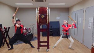 最後に大太鼓を使って正面打ちで三三七拍子で