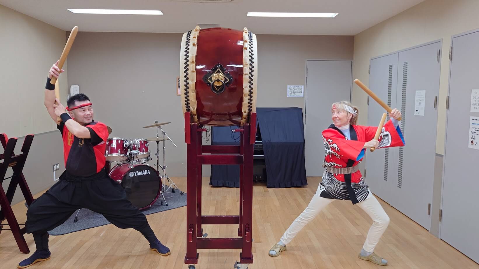 イギリスからプロスキーヤ-の女性が和太鼓体験にいらしてくださいました。