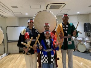 和太鼓らしくみんなで輪になってハイタッチ!!