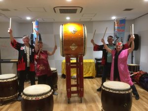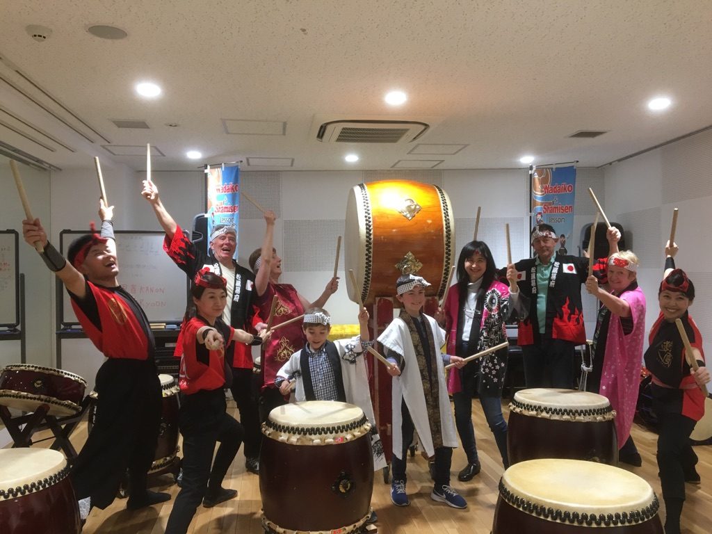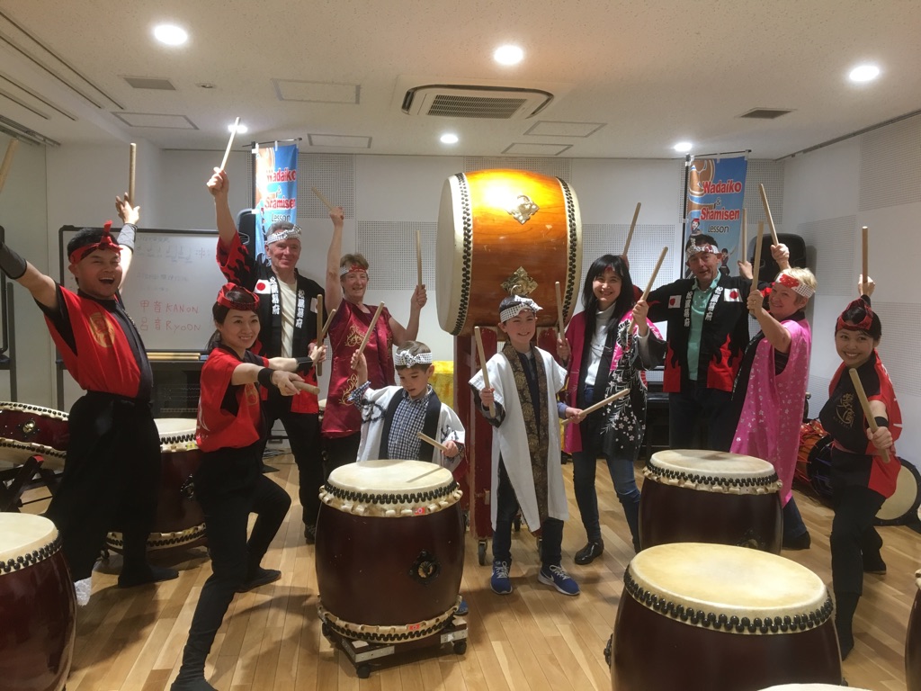 ご夫婦二組は日本に2週間滞在し、東京の他にも関西地方、中国地方も旅される忙しい日程の中、我々の和太鼓体験に足を運んで下さいました。