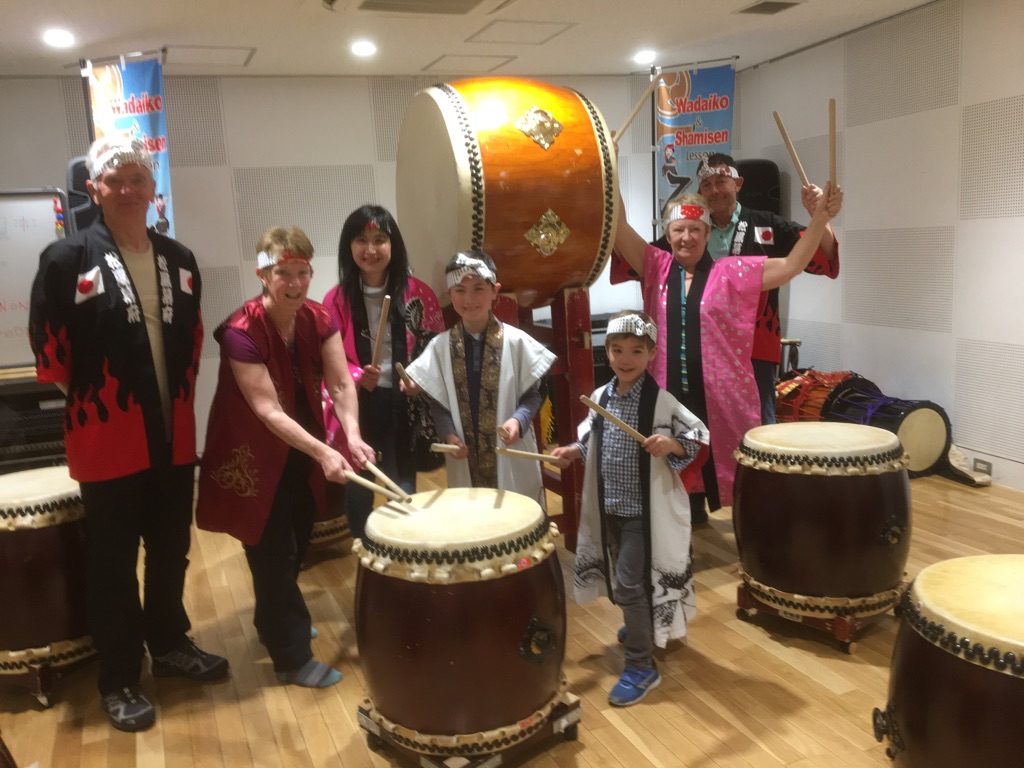 イギリスからの親子1組夫婦2組お客7名様 和太鼓体験