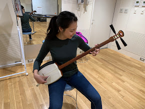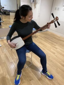 日本舞踊を学ぶ女性が津軽三味線体験にいらしてくださいました。