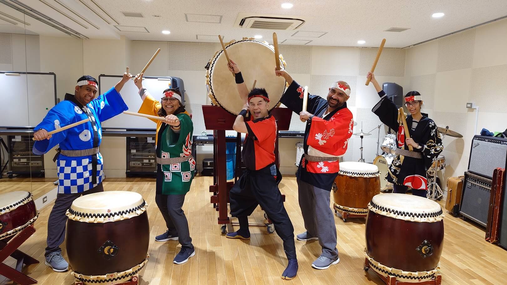 皐月晴れ!!カナダから法被を纏って家族4名で和太鼓体験