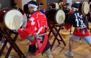 和太鼓も初めてとは思えないほどポーズもキマッてチームワークばっちり