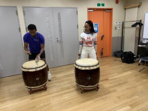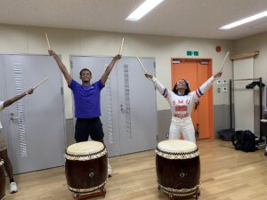 お祭りのリズムにチャレンジ。