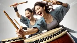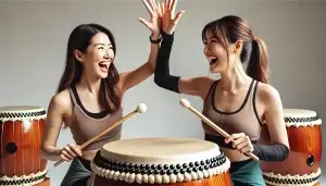 40代日本人女性がペアで和太鼓体験にいらしてくださいました。