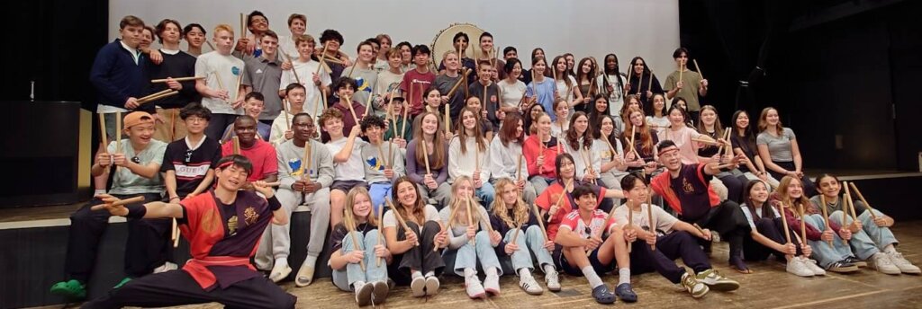 カナダから修学旅行で高校生と先生方 77名様で和太鼓体験をご利用頂きました。