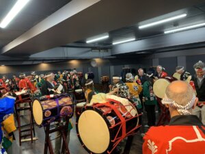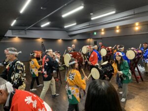 最後に縁起物の和太鼓で邪を祓って家族の皆様も交じって