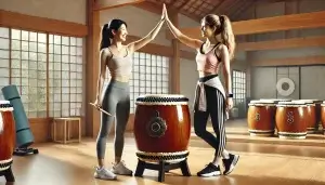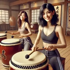 カザフスタンと日本の20代の女性が友達同士で和太鼓体験にいらしてくださいました。