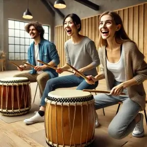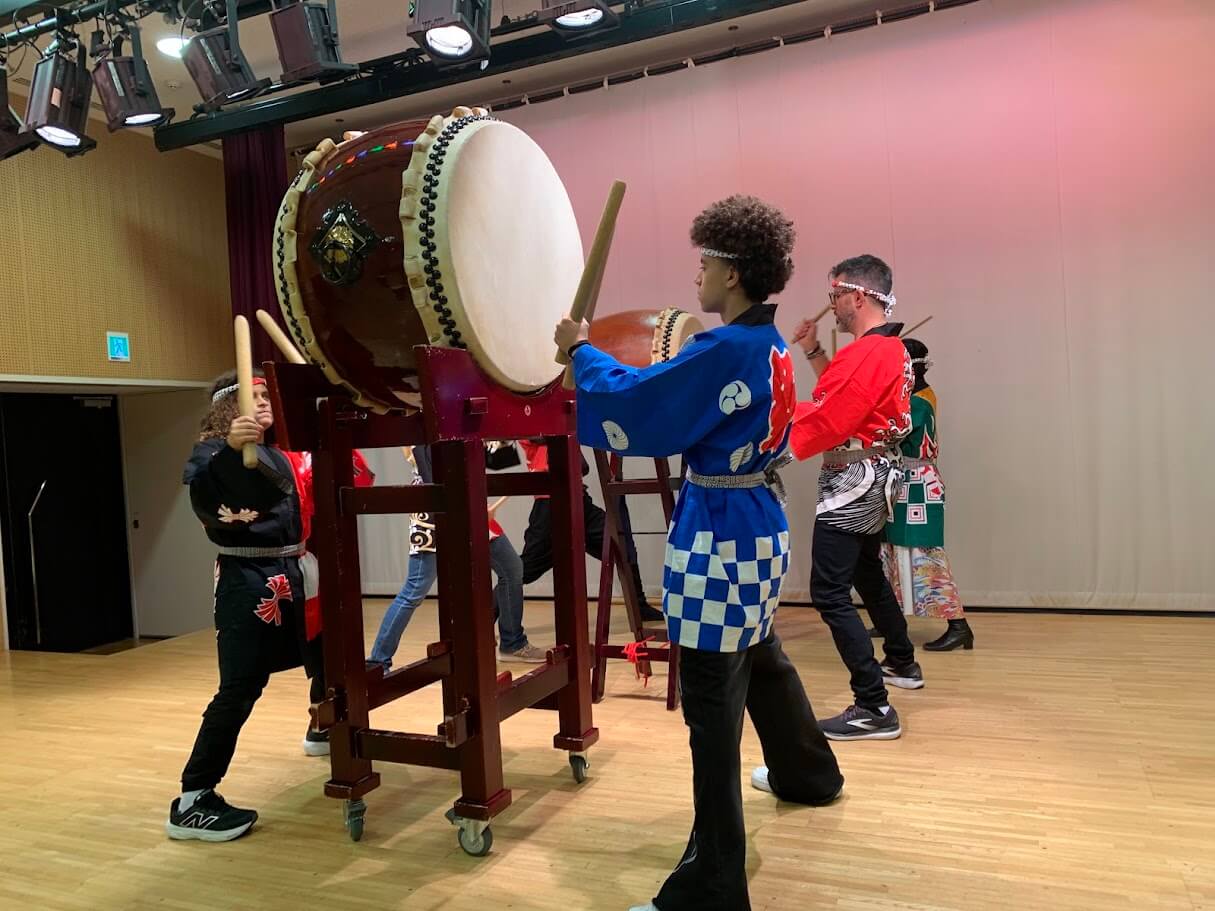 日本在住女性がアメリカからの友人家族を招いて和太鼓体験にいらしてくださいました。