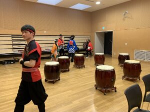 会場ご案内後に並べられた和太鼓を見て興奮。