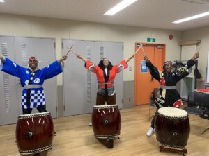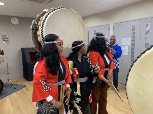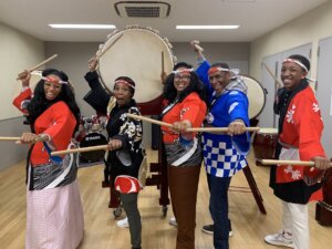 日本在住女性がアメリカからの友人家族を招いて和太鼓体験にいらしてくださいました。