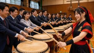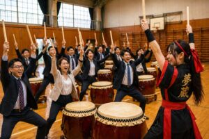 企業担当者様にとって、海外拠点・来日ゲスト・報奨旅行・社内交流の場では、言語に頼らず全員が参加できるプログラムが重要です。和太鼓体験は、その条件を満たしやすい日本文化チームビルディングです。