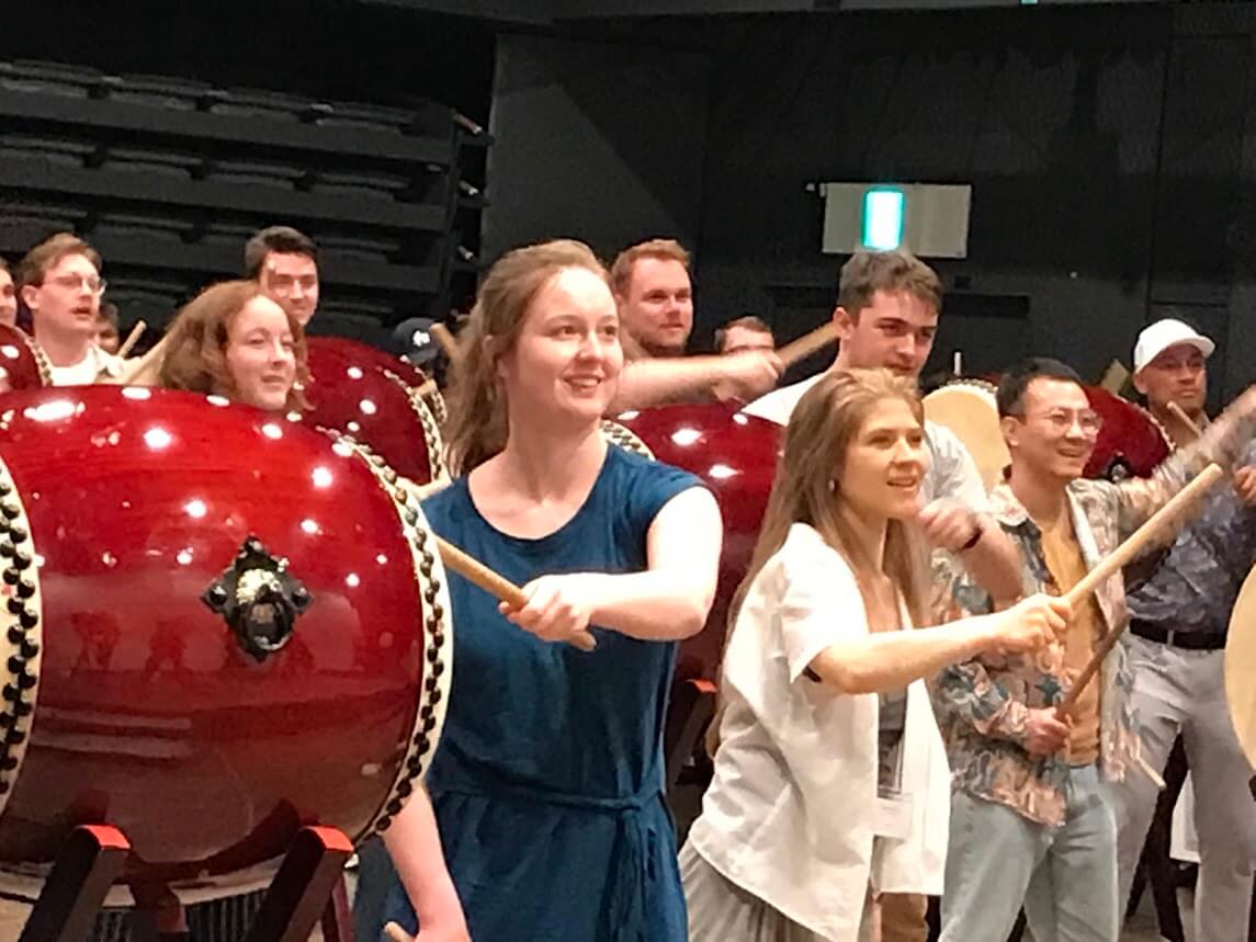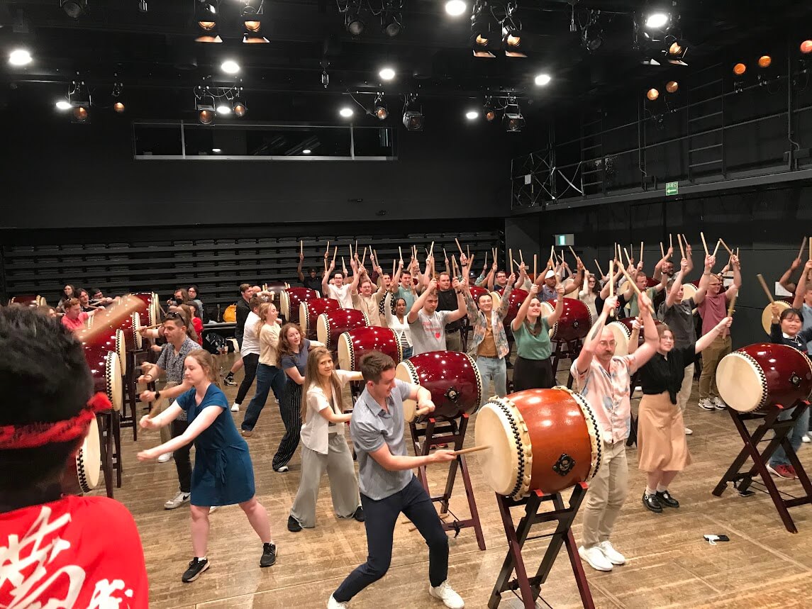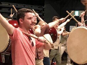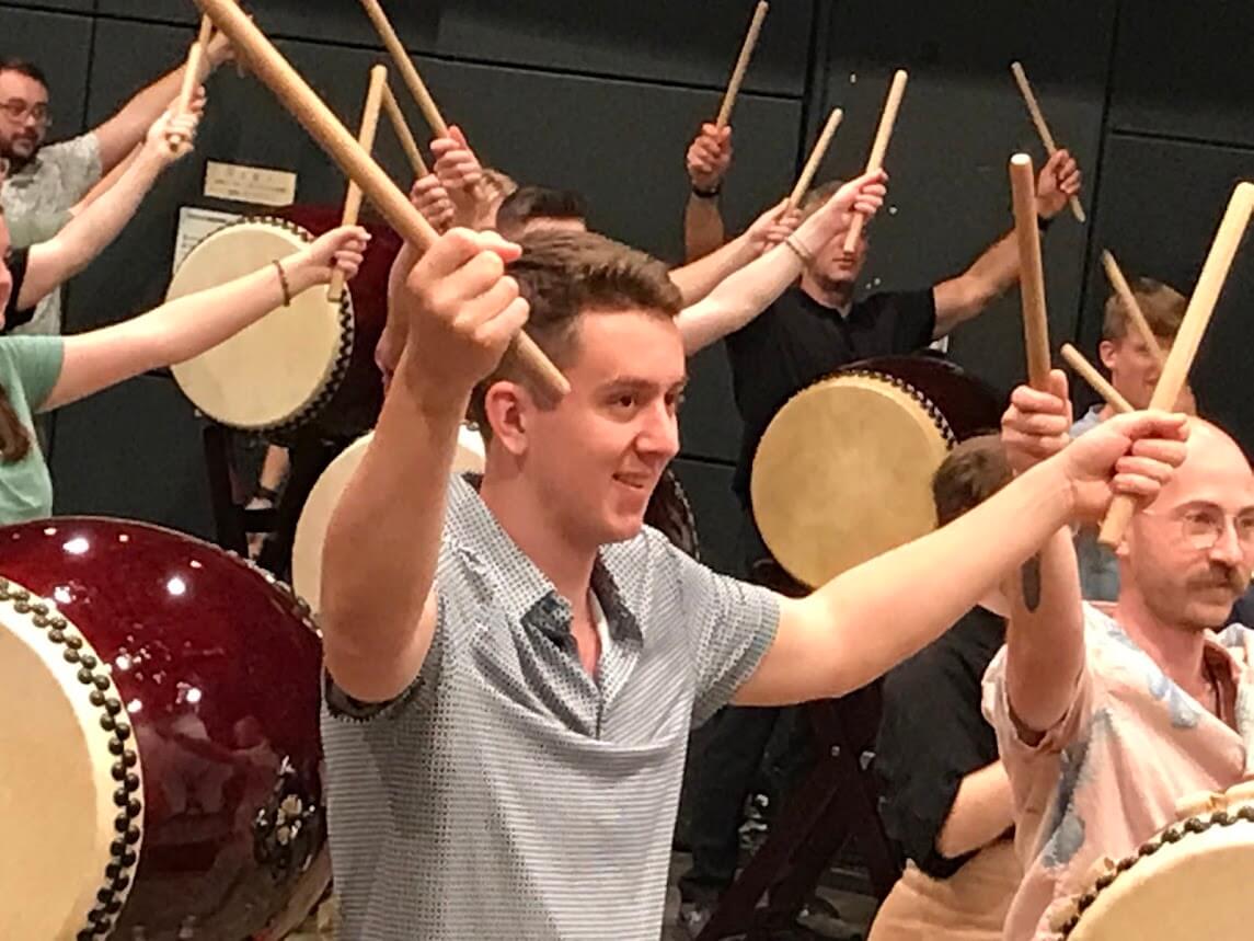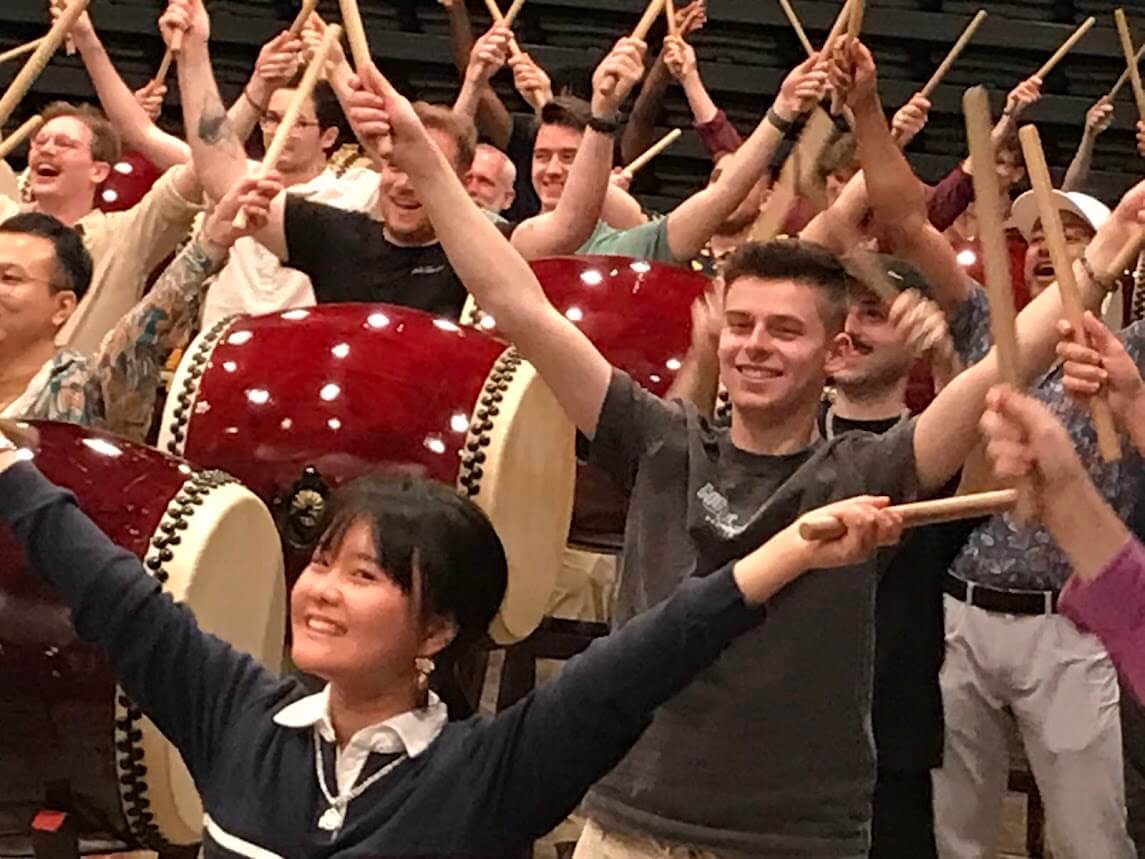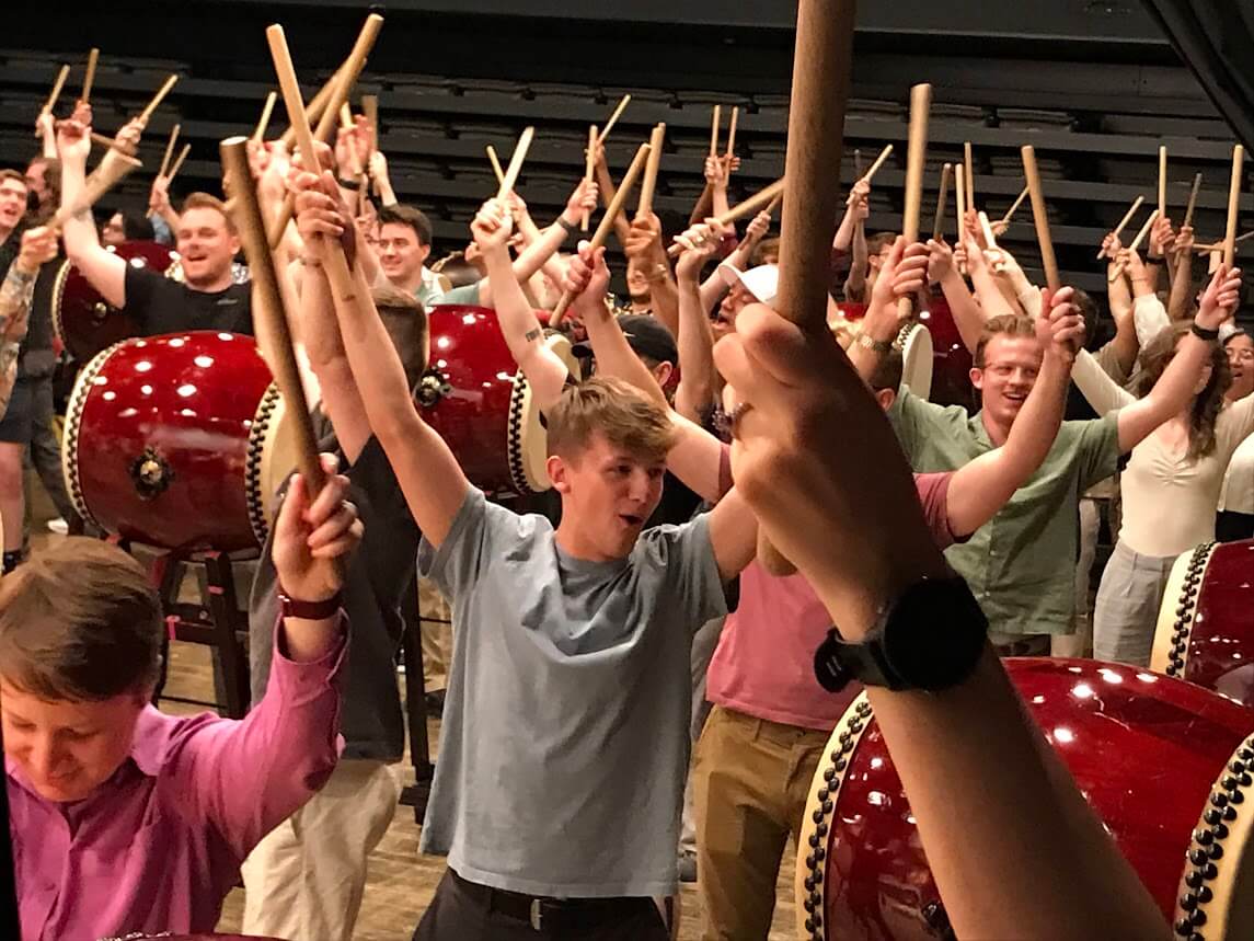 オハイオ州立大学からシンフォニー楽団75名和太鼓体験60分コース