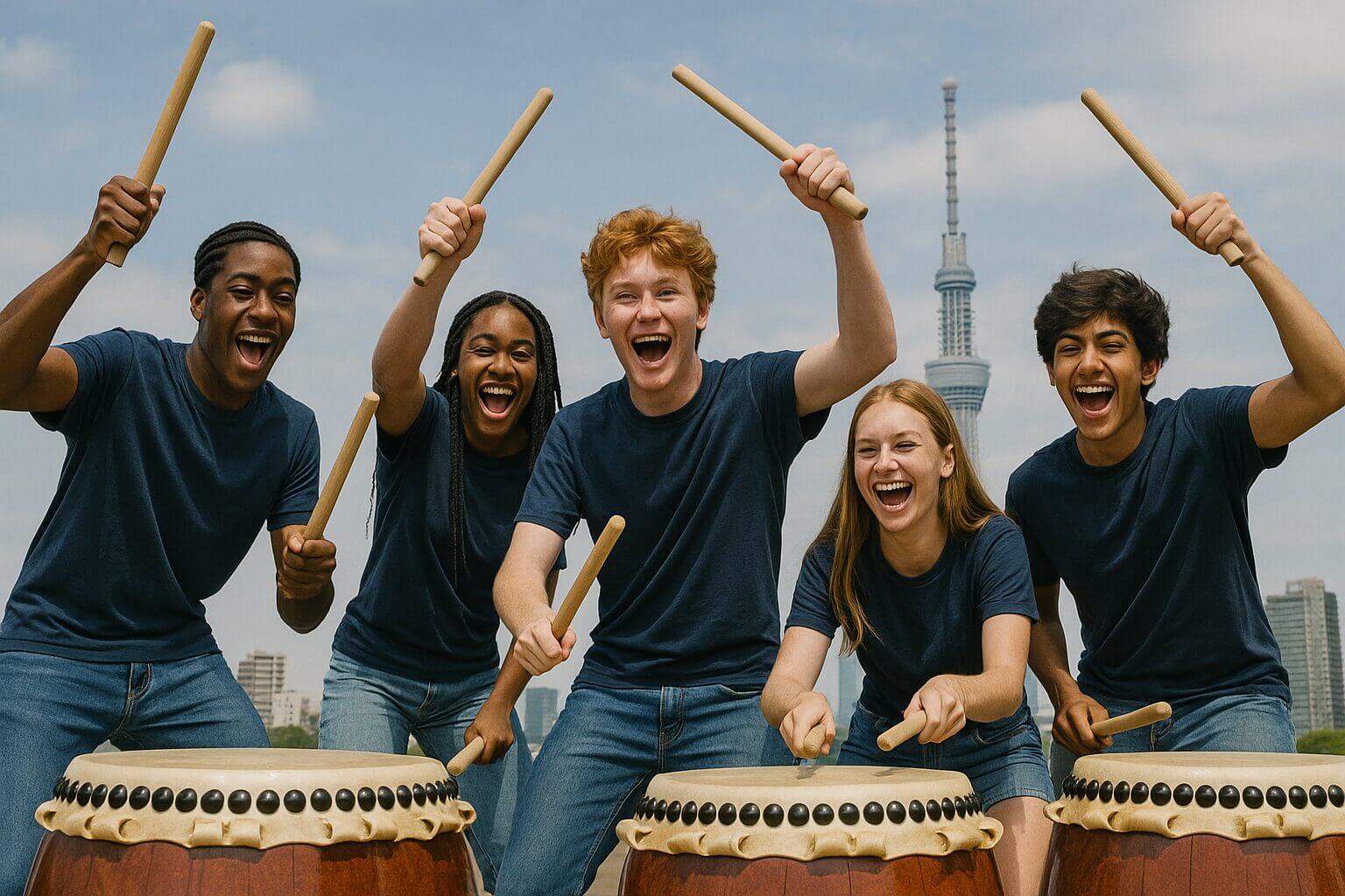 アメリカから53名音楽生和太鼓体験60分コース