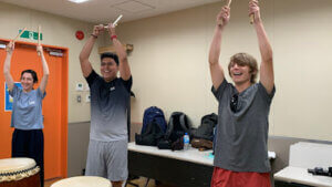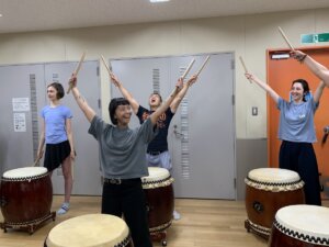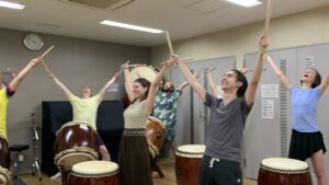 和太鼓も初めてとは思えないほどポーズもキマッてチームワークばっちり