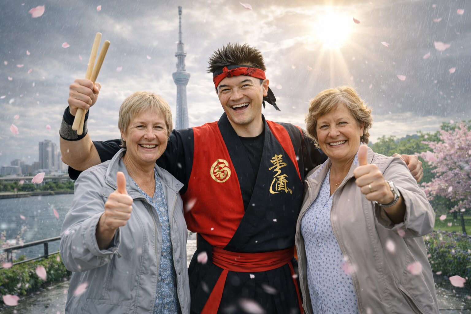 レインコートを着て来てくださった理由は「和太鼓体験が楽しみだったから」。
