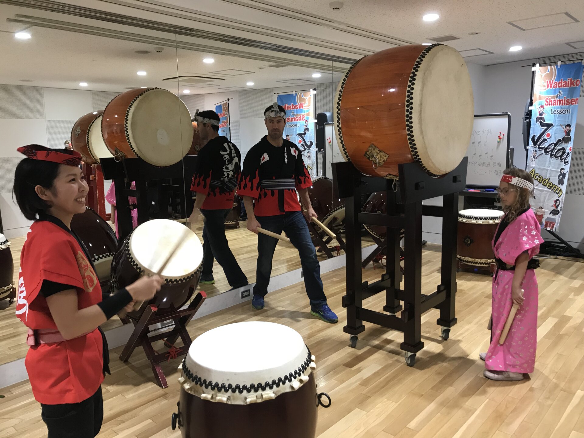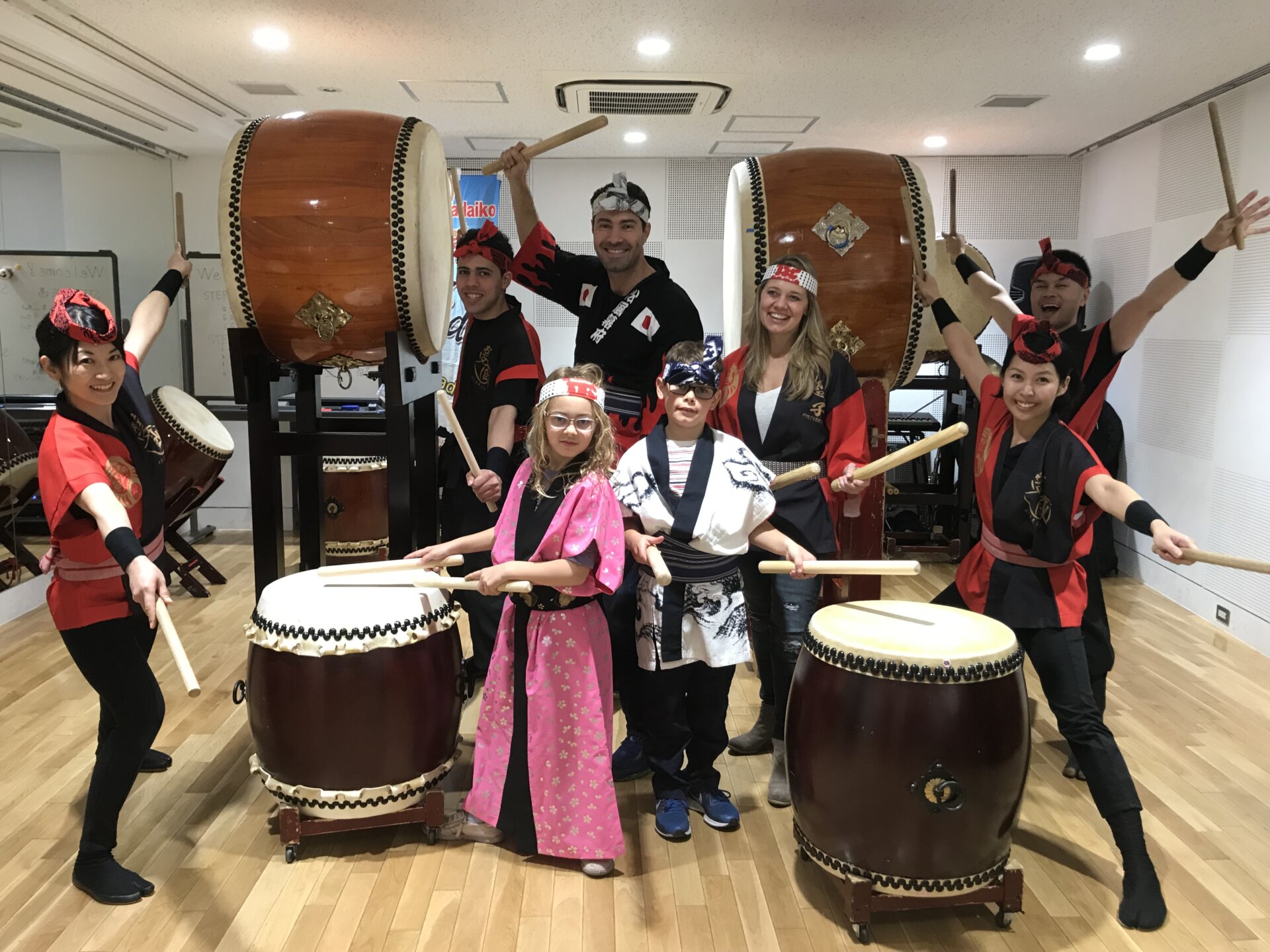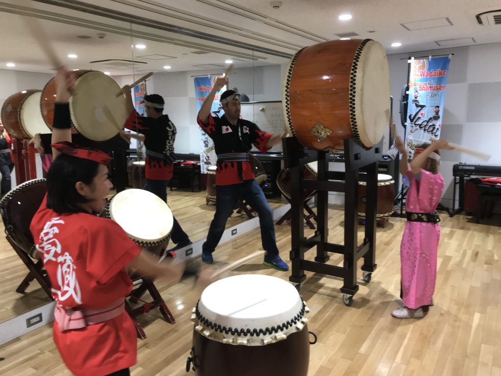 色々な楽器がありますが、中でも和太鼓は、初めての方が集まってもみんなで一緒に楽しめる!こうして日本で家族揃って「新しい体験」をしていただける!そこが良いところなんですね〜、
