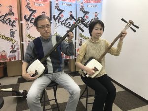土曜日の午後に三味線に関心を持つ女性が三味線体験にいらして下さいました。