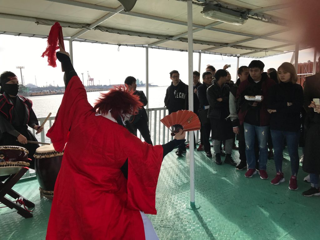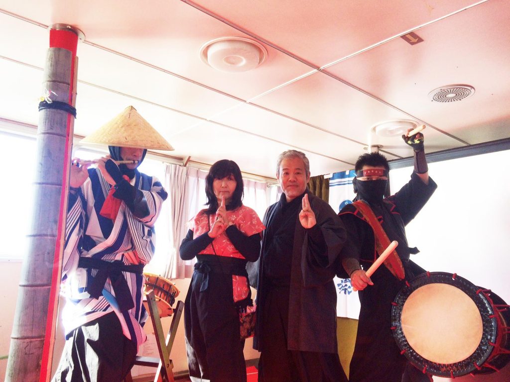 江戸隠密武蔵一族 東京湾クルーズ 忍者セミナー で和太鼓三味線演奏。