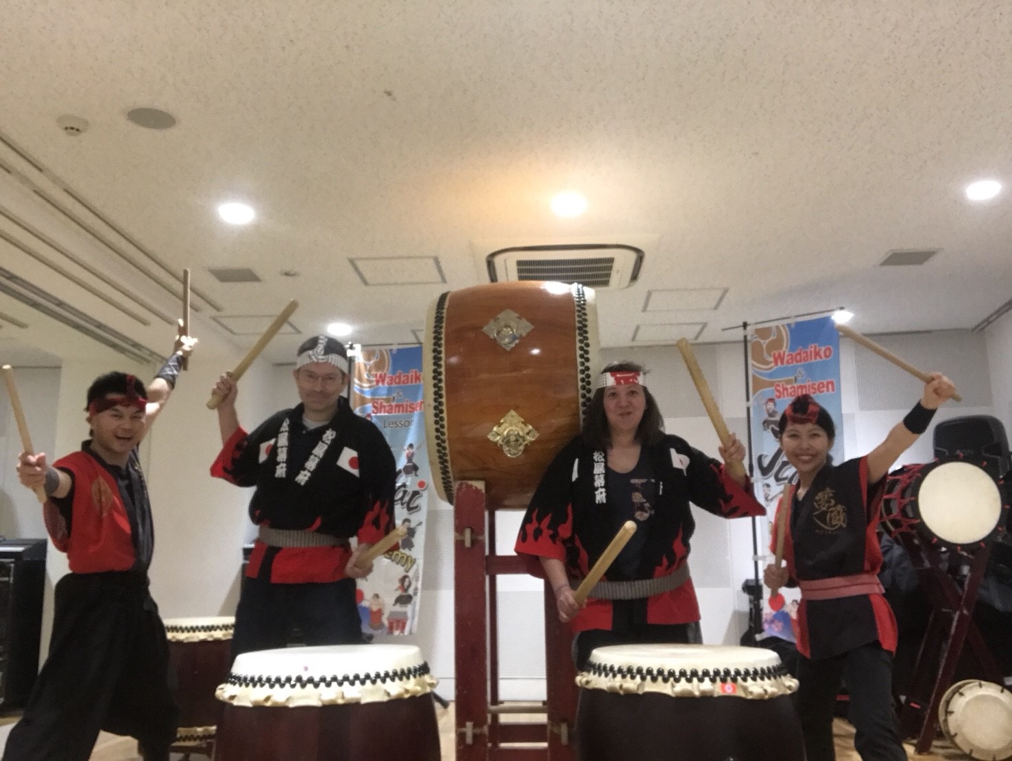 通訳ガイドはオプションで国家資格の通訳案内士の資格を持って和太鼓研修を受けて