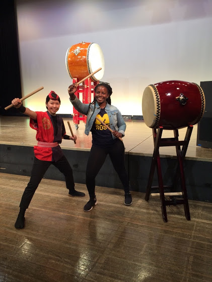 instructor リアルくノ一夢子です。 ミシガン大学51名様が和太鼓体験いらして下さいました。 大型バスの到着を待ちお出迎え、歓迎の演奏 皆さんお昼前でお腹ペ...