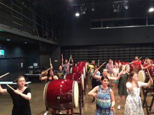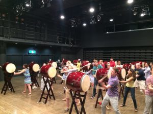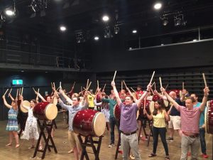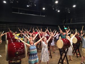 皆さん時差ボケのある中でお越しいただいたということでしたが、和太鼓の音が良い目覚めになったでしょうか、音を出したり息を合わせたりしているうちに、どんどん明るく元気になってきて。