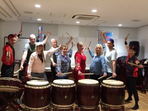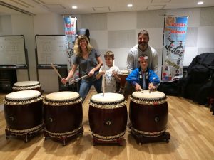 日曜の昼過ぎにアメリカから9名様和太鼓体験!