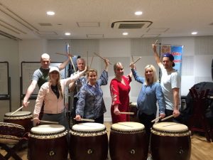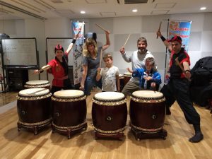 日曜の昼過ぎにアメリカから9名様和太鼓体験!