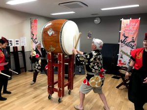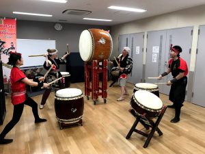 鳴です。良いお天気になった土曜のお昼前、イギリスからお越しのご夫婦が、和太鼓体験に来られました!