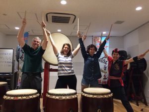 アメリカから祖父母とお孫さんの誕生祝いで和太鼓体験