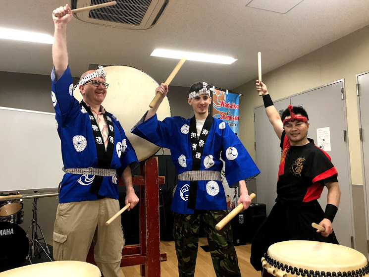 イギリスから法被持参で親子お二人で和太鼓体験。