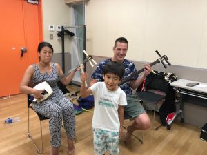 スカイツリーエリアでフランス人4歳の男の子とご両親で和太鼓体験
