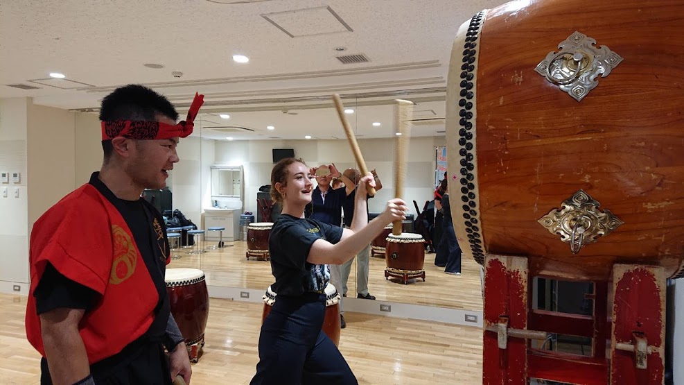 フィギアスケートもされている女性とご両親が和太鼓体験にいらして下さいました。
