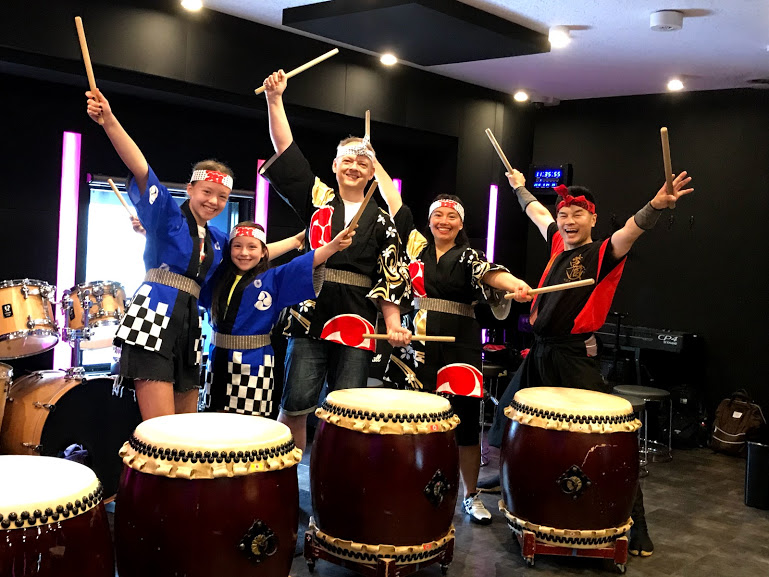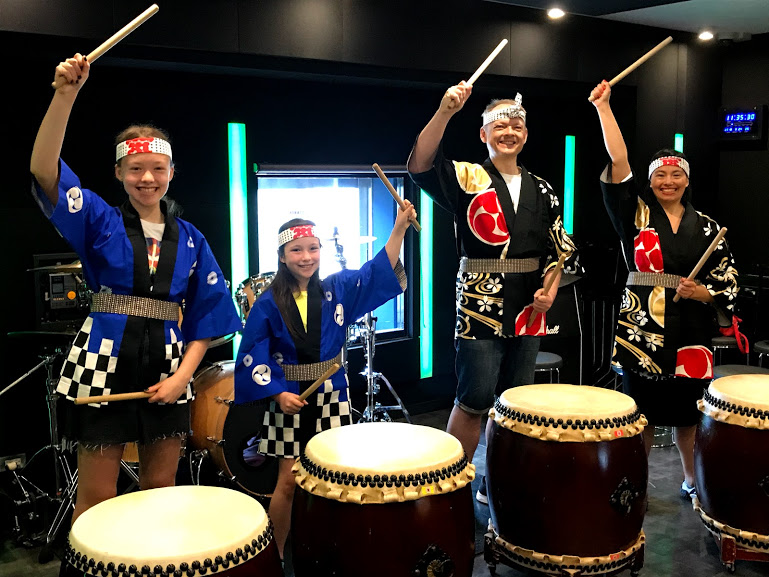 本日は秋葉原でオーストラリアからご家族4名で貸し切り和太鼓体験。