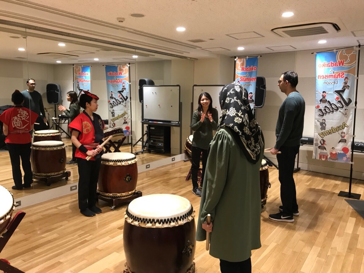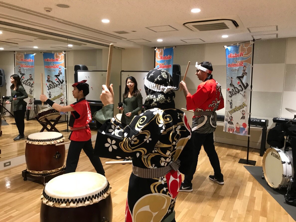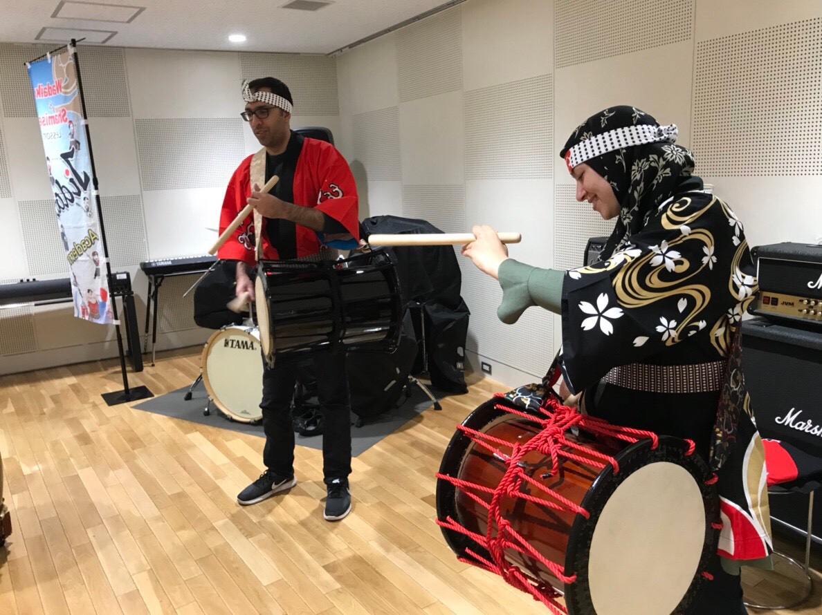 マーチング用のドラムとインドドラムの演奏隊をそれぞれよんで演奏してもらったそうです。太鼓が大好きで、本日の和太鼓体験もとっても楽しみにいらしてくださいました!