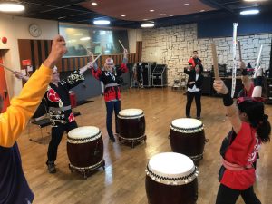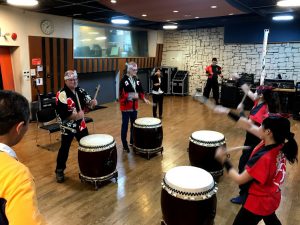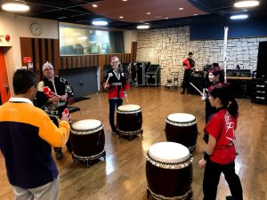格好も整えて、さあ和太鼓体験のはじまり