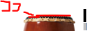 ・耳 耳があると皮が緩んだ際に貼りなおすことができます。好みになりますが見た目が威厳があるという考え方もあるようです。 音の部分では耳は響きは無く楽曲中の音としては成立しないので演奏には使用しません。 耳のある太鼓で淵を打つ際には耳にあてずに 打つ技術が必要となります。 耳の無い太鼓は皮が緩んでも張りなおせません。 |