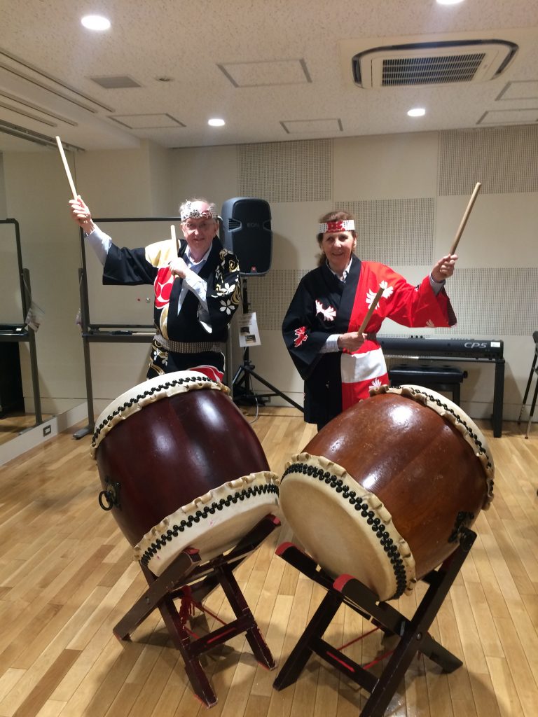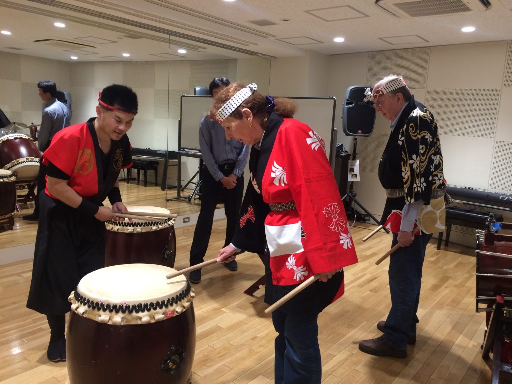 奥様は太鼓の仕組みや歴史などを大変に興味深く聞いていらっしゃいました。