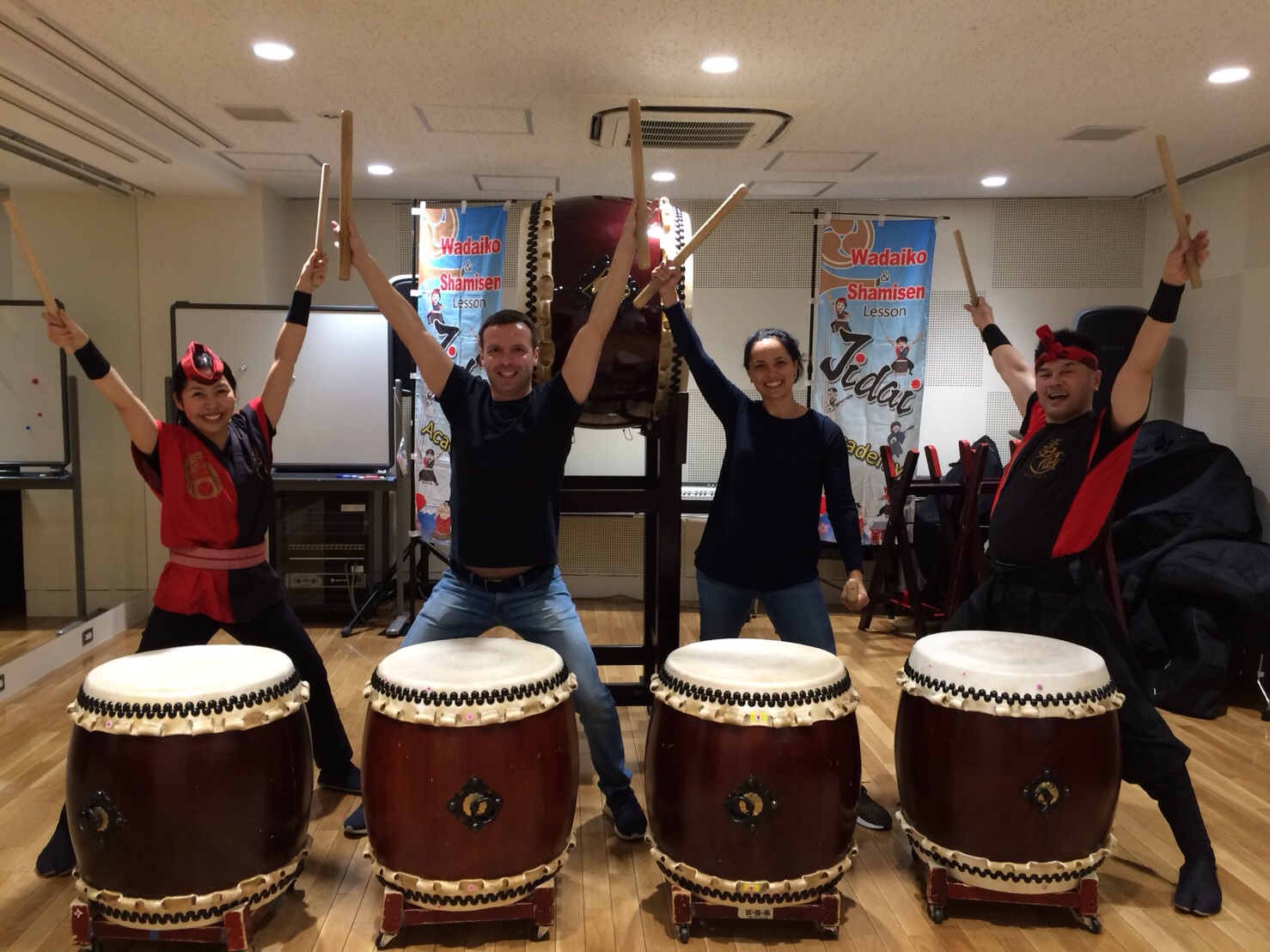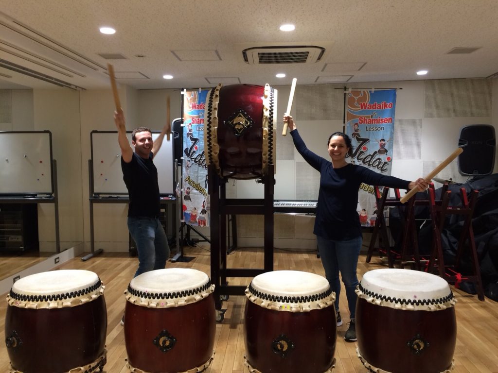 お二人とも、打つ姿勢もとてもきれいで熱心に師匠の言葉を聞きながら打ち込まれていました。沢山のことを質問されながら、息子さんがドラムをやっていてクイーンが好きなんだよ~という話になりました。後ほどこの体験中にもクイーン流すよ~と密かに思いながら師匠と目配せしていました。笑